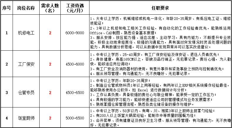 招聘崗位: