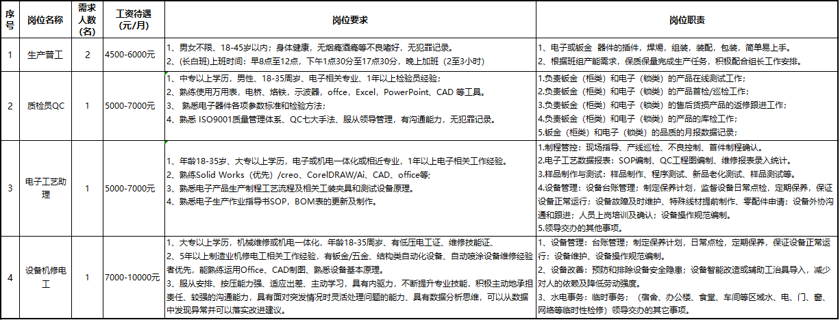 8、工作環(huán)境:獨立工業(yè)園,車間配置有空調,工作環(huán)境舒適;